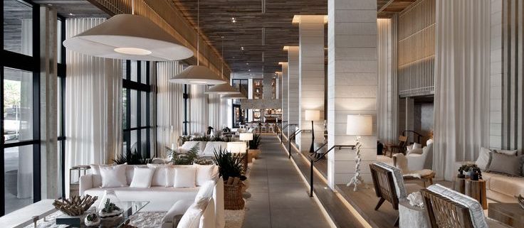 Las cortinas para lobby de hotel deben ser pensadas para un espacio que ya por sí mismo es multifuncional. Deben estar en sintonía con la arquitectura y diseño visual general para respetar el esquema decorativo propuesto por los diseñadores de interiores del lobby.