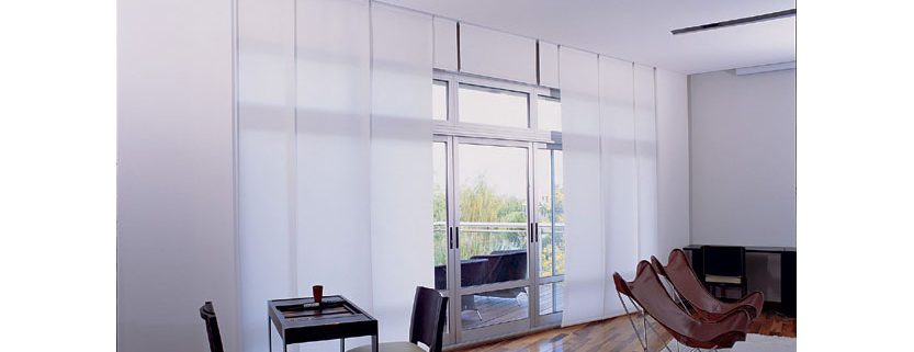 Este sistema está compuesto por paneles verticales de tela, que corren de forma horizontal por rieles de carriles múltiples.